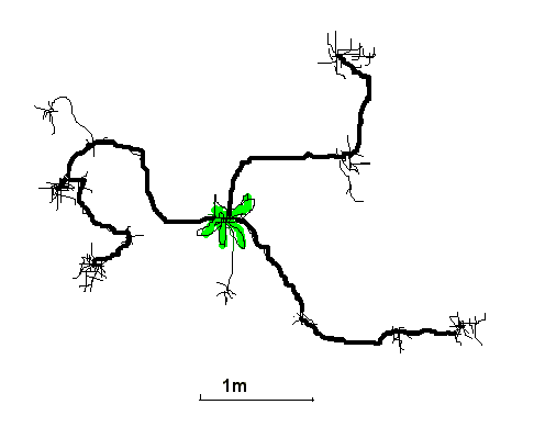 Egy szárazságtűrő növény gyökérzete (felülnézet)