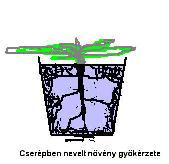 Cserépben nevelt növény gyökérzete
